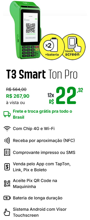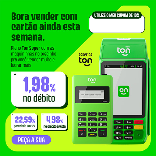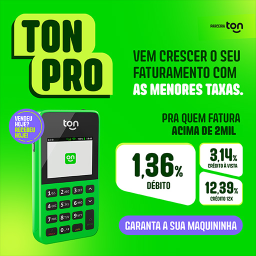 As maquininhas Ton são a escolha perfeita para quem busca economia e eficiência no dia a dia do negócio. Com taxas competitivas, conexão estável e modelos que atendem diferentes necessidades, elas garantem mais vendas e menos custos. Além disso, não têm aluguel, são fáceis de usar e oferecem suporte completo para você focar no que importa: fazer seu negócio crescer. Ton é tecnologia acessível, ideal para quem quer qualidade sem abrir mão do custo-benefício!